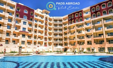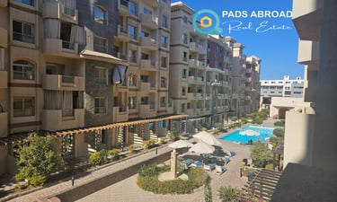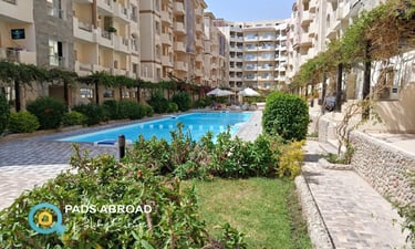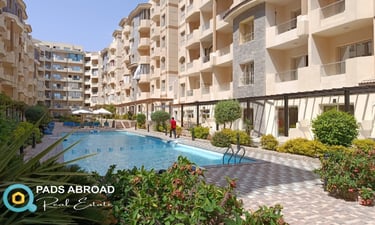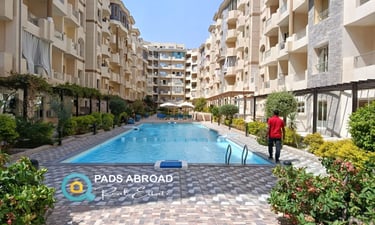 Modern apartments with resort-style facilities including a large pool, gym, spa services, café, 24/7 security