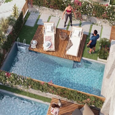 Lazuli Resort is a fully integrated, luxury modern residential community located in the heart of Hurghada, Red Sea, developed over an expansive 40,000 sqm master-planned site. Designed with a strong focus on serenity, lifestyle, and nature, only 20% of the project footprint is built, while 80% is dedicated to lush landscapes, lagoons, and open spaces.